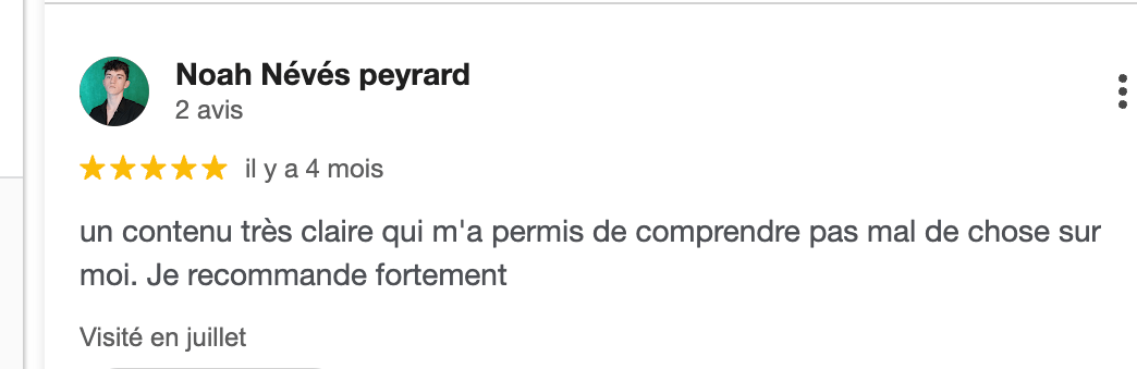 Les premiers résultats sont immédiats, dès lors que tu es coachable. Généralement dès la 1ère ou 2ème séance. Dès que tu comprends tes mécanismes, tu changes ta manière de réagir, et tes relations s’apaisent rapidement.